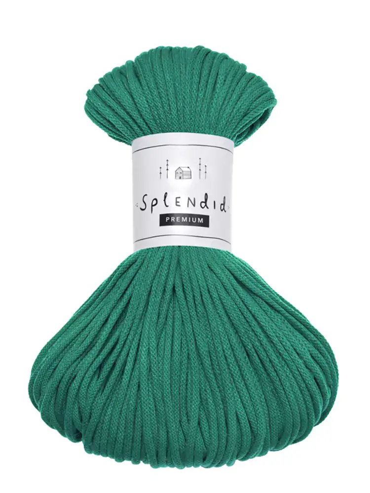Az 5 mm-es prémium Splendid zsinórfonal  újrahasznosított pamutból készül, a közepén a színével azonos pamut “maggal”. A minőségi textúra, kiválóan alkalmassá teszi az egyedi technikák alkalmazásával készített horgolt, kötött, vagy makramézott alkotásokhoz.